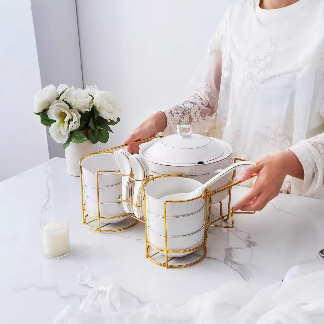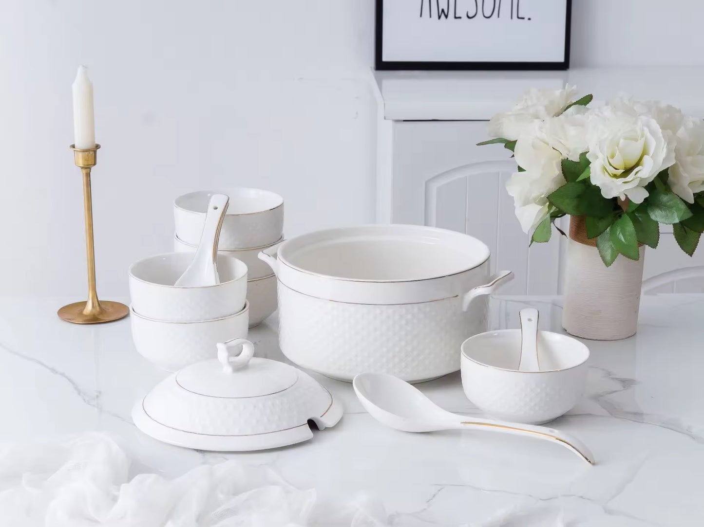 Expertly crafted from durable ceramic, the Camila Soup Pot Chafing Dish Set is a must-have for any elegant dining experience. Its timeless design and sturdy construction ensure long-lasting use, making it the perfect addition to any kitchen. Upgrade your cooking and presentation with this professional-grade set.