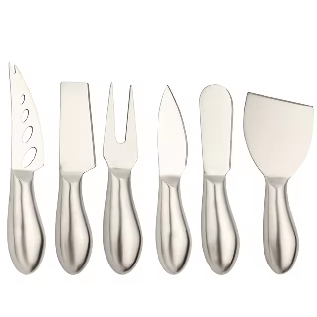 Introducing the Maven Cheese Knives set, a 6-piece ensemble of expertly crafted cheese knives. Each knife is made of durable stainless steel and boasts a luxurious finish for a touch of elegance. With a versatile design that includes a slicer, cutter, spatula, fork, and butter knife, this set is sure to enhance your cheese tasting experience.