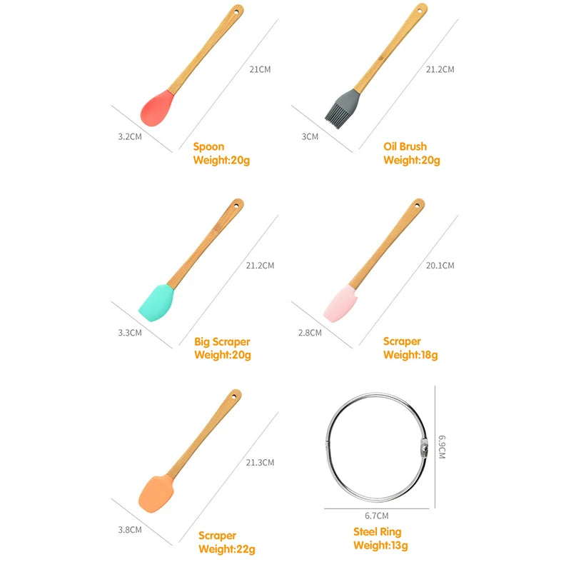Minified Silicon & Bamboo Spatula - Set of 6 Pieces
