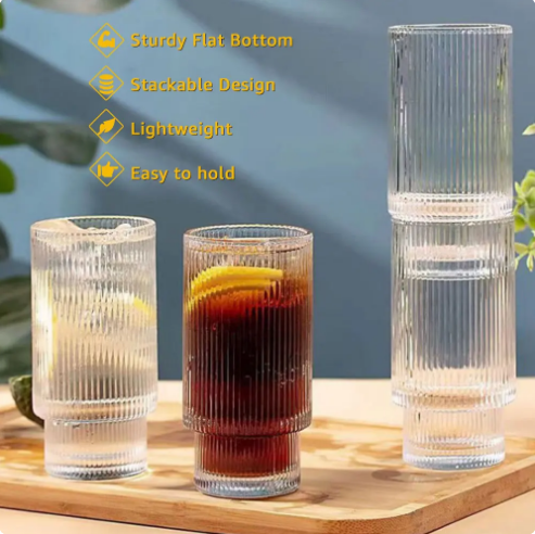 Introducing our Paxton Drinking Glasses - perfect for coffee, cocktails, and more. With a stackable design, these transparent glass cups are simple and versatile for any beverage. Enjoy your drinks in style with our sleek and functional glassware set.