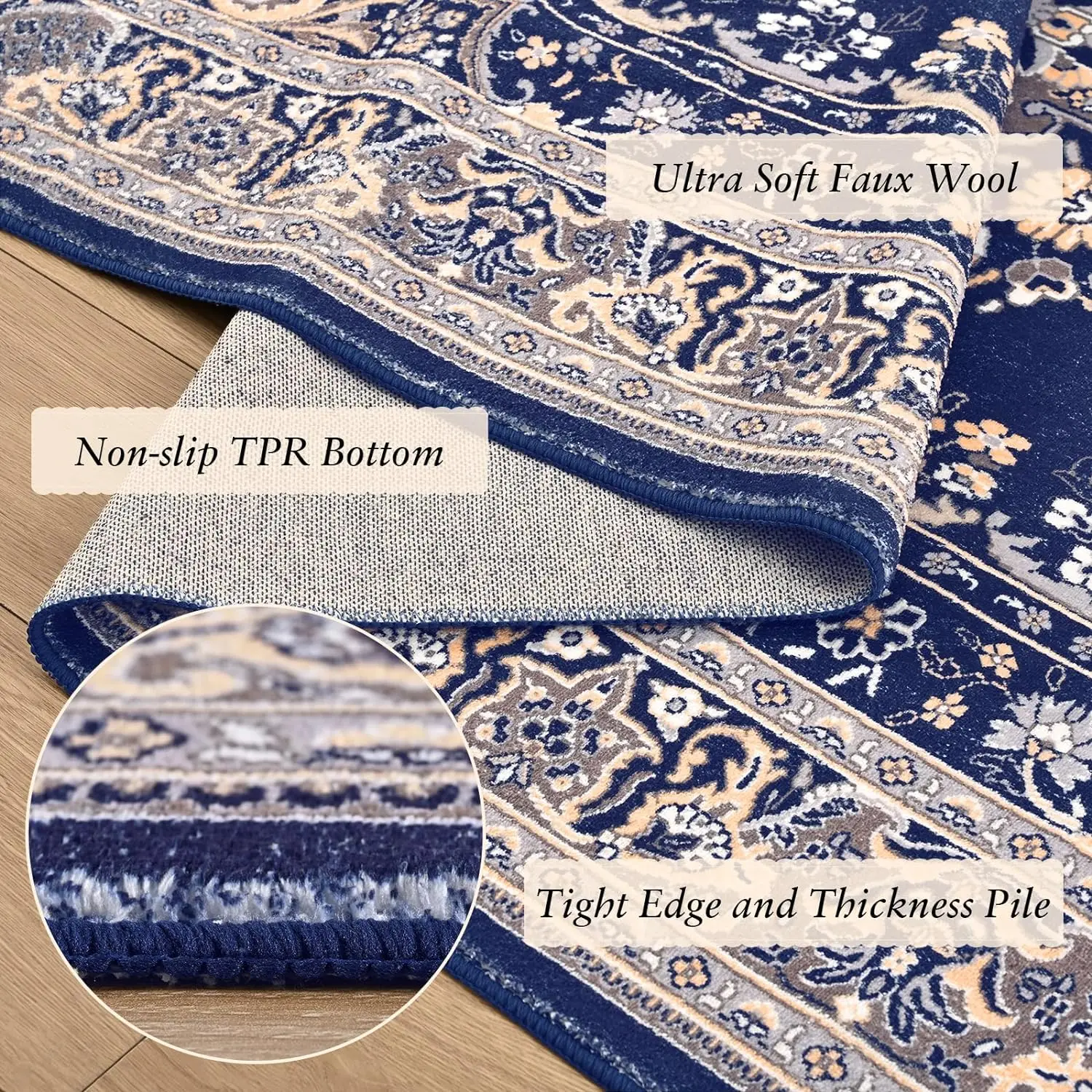 Introducing Reed Carpet, the washable rug that adds vintage flair to any room. With its non-slip design and faux wool material, this floral rug is perfect for living rooms, bedrooms, and dining rooms. Elevate your room décor with ease and enjoy the convenience of a machine washable rug.