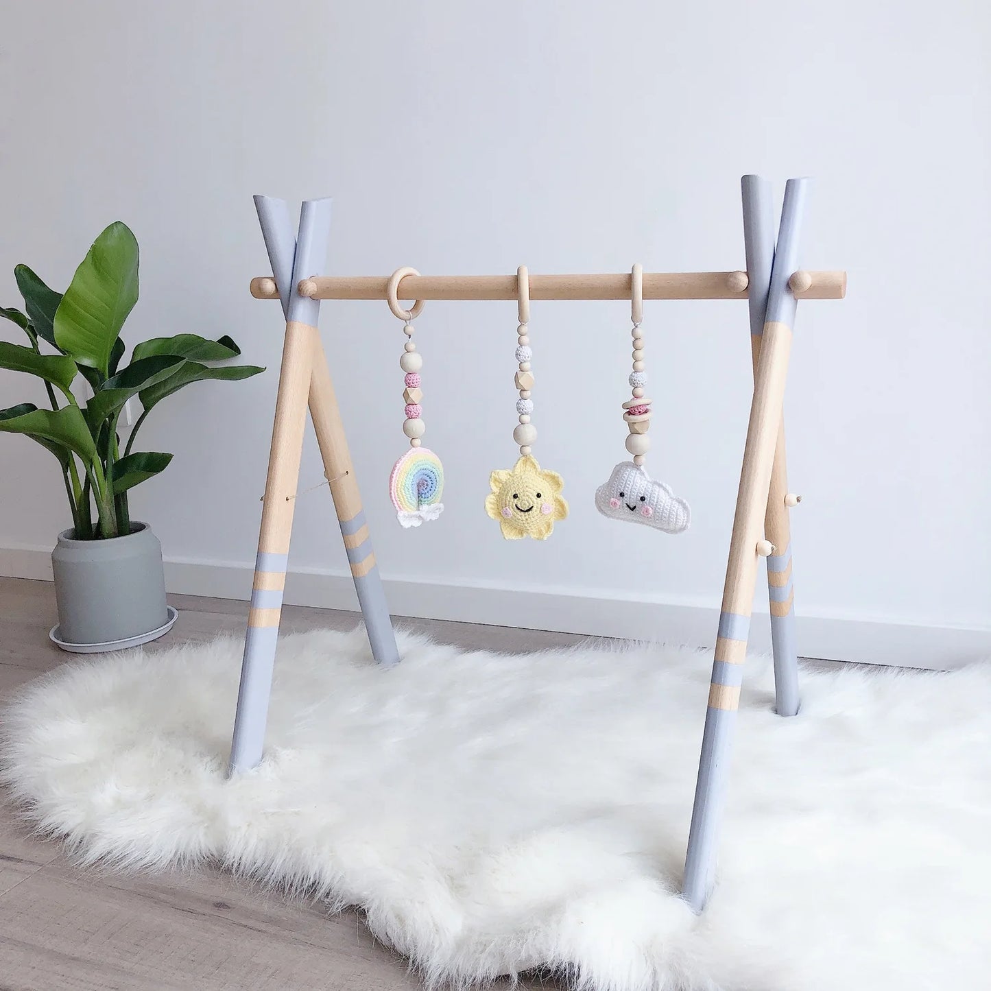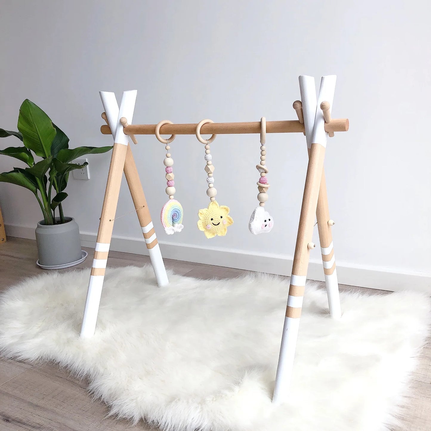 This solid wood baby play gym is expertly crafted to provide a safe and stimulating environment for your little one's playtime. Made from high-quality solid wood, this play gym is not only durable and sturdy but also promotes sensory development and hand-eye coordination. Give your baby the best playtime experience with our solid wood baby gym toys.