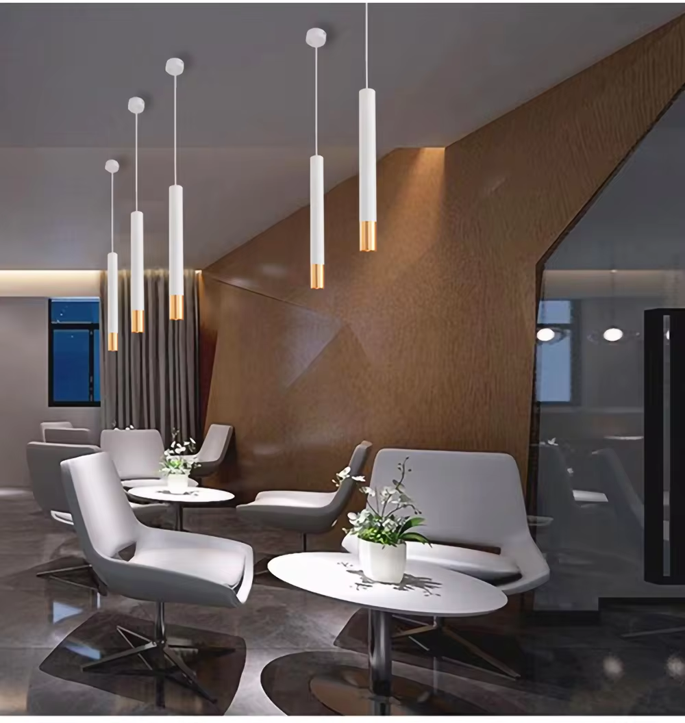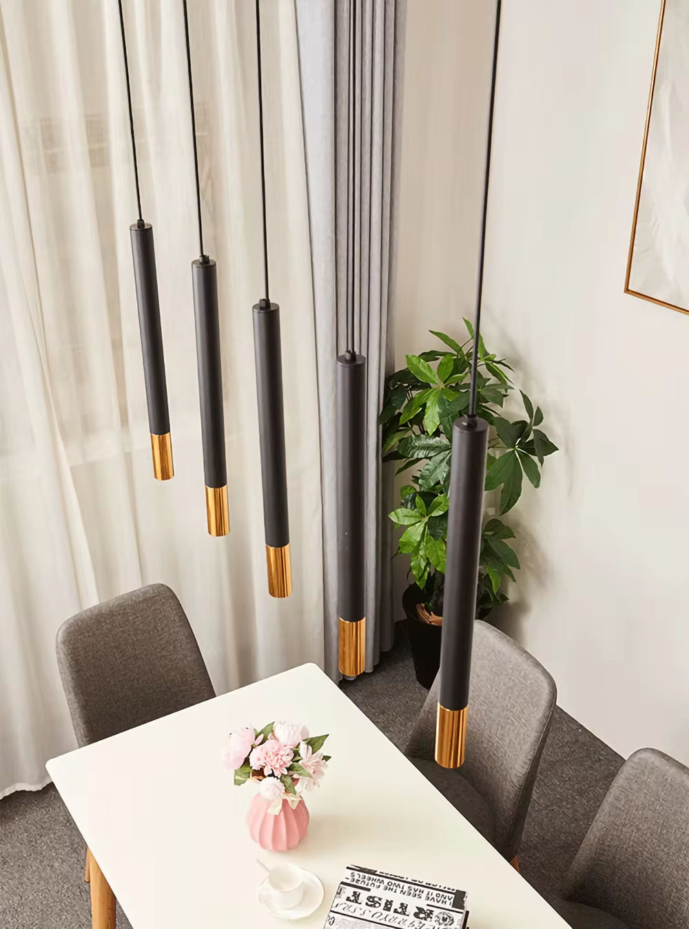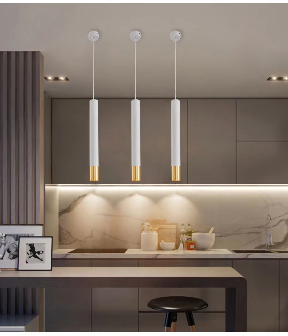 Illuminate your space with the sleek and modern Colter Pendant Lamp. Its long tube design, brushed finish, and round chassis make it a stylish addition to any indoor kitchen or bar. With LED lighting, choose between black and white with gold accent to fit your aesthetic.