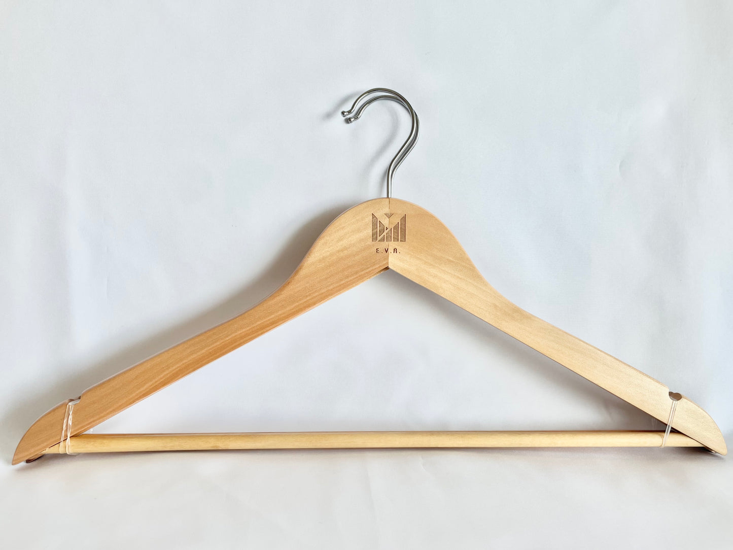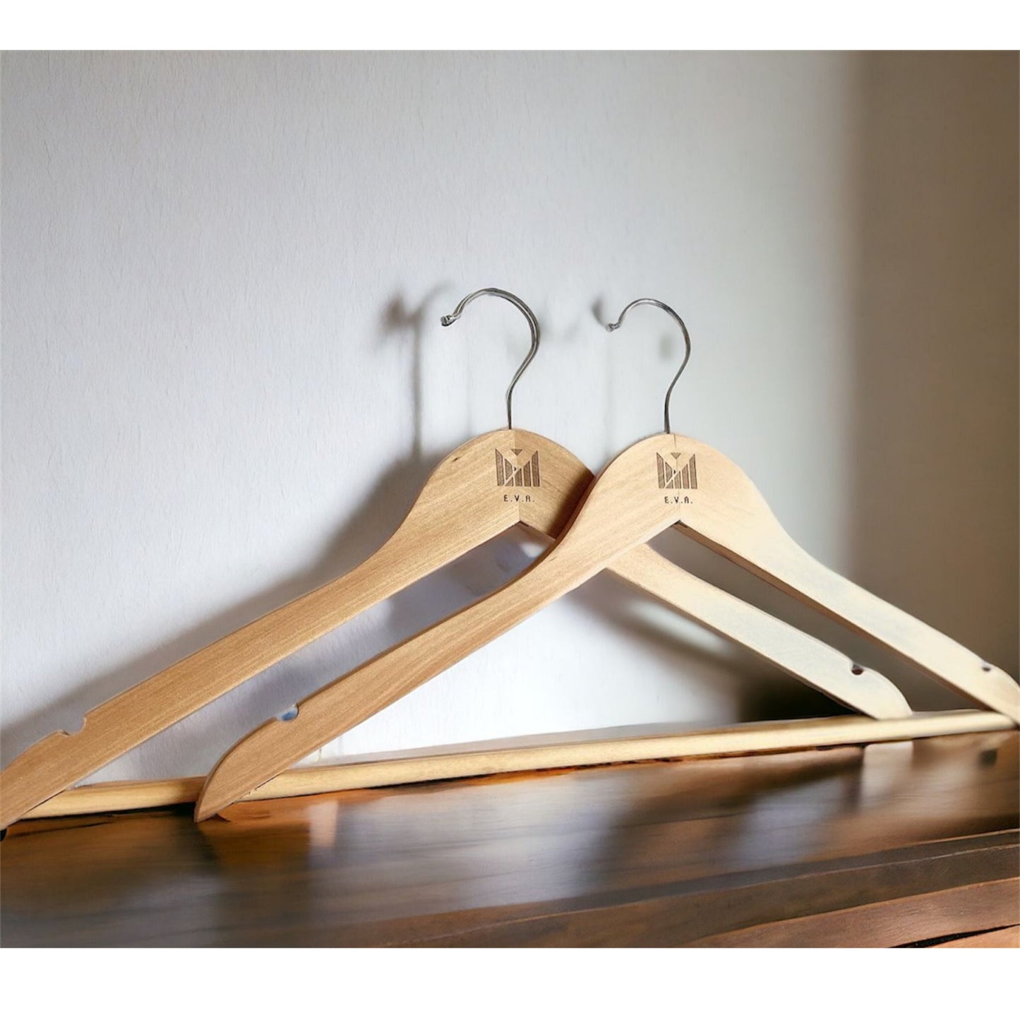 Elevate your wardrobe with our E.V.A. Branded Lama Clothes Hangers. Crafted with sturdy materials, these wooden hangers provide reliable support for your garments. Keep your pants wrinkle-free with the included pants bar. Experience luxury organization with this set of 2 hangers.