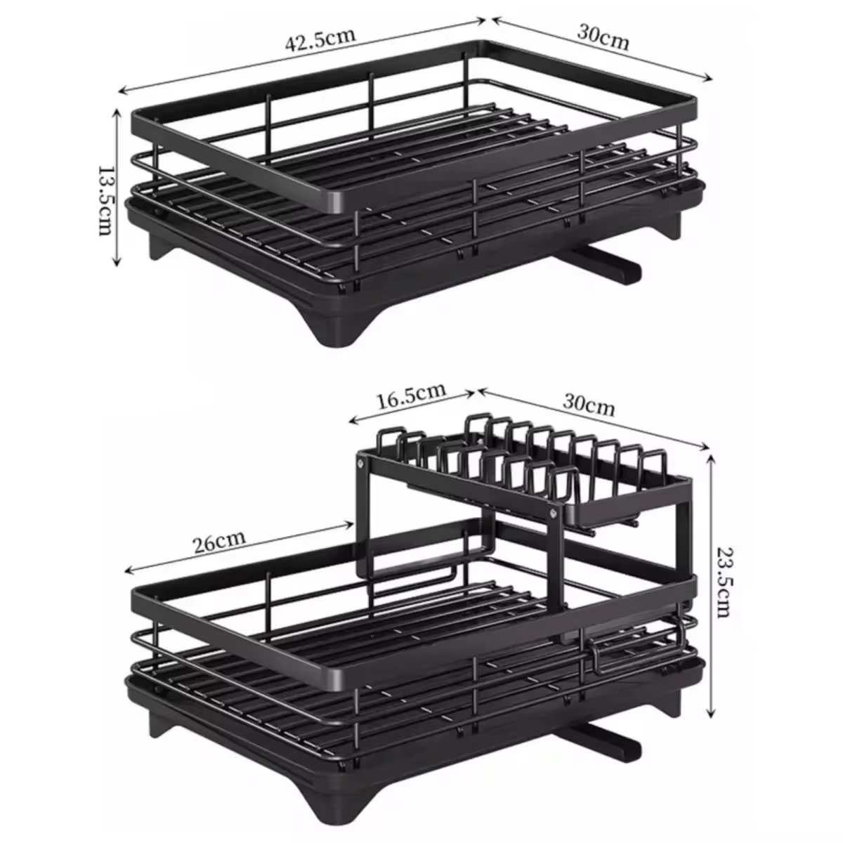 The Franklin Dish Rack is the perfect addition to any kitchen. This adjustable dish drying rack is made of durable stainless steel and features single or double layers to organize plates, bowls, and kitchen utensils. Keep your kitchen clutter-free and your dishes dry with this functional and practical storage solution.