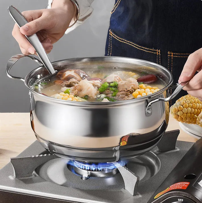 This set includes 3 high quality pieces of cookware made from stainless steel, ensuring rust resistance and optimal health for daily use. Easy to clean and dishwasher safe for convenience in the kitchen.