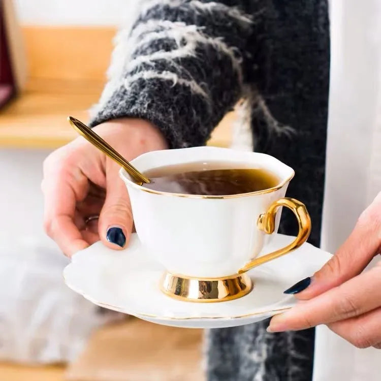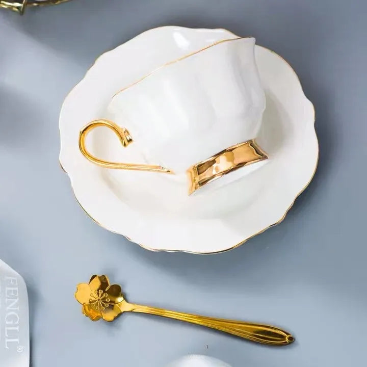 Expertly crafted from high-quality white porcelain, the Glacial Gold Rim Tea Set exudes a minimalist and modern style. The gold rim and handle add a touch of luxury, making it perfect for addition to your home.