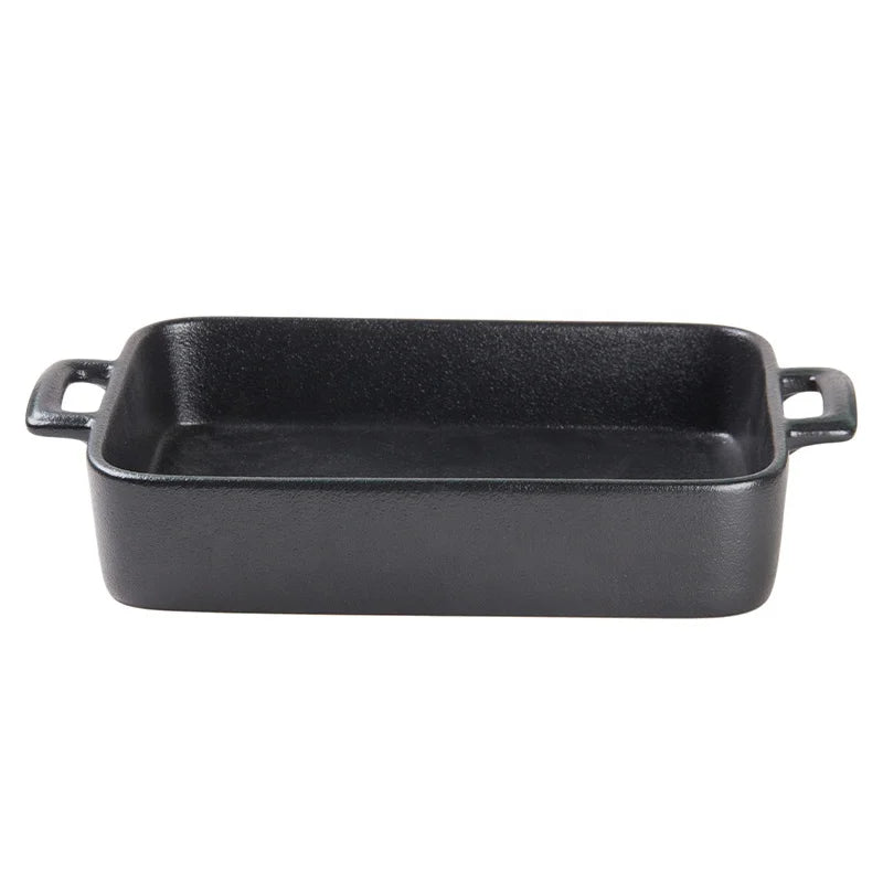 Crafted with durable stoneware, the Grayson Baking Dish is perfect for baking in any oven. Its black ceramic tray comes equipped with convenient double handles for easy handling. Versatile and efficient, use it in the microwave for quick bread-making.