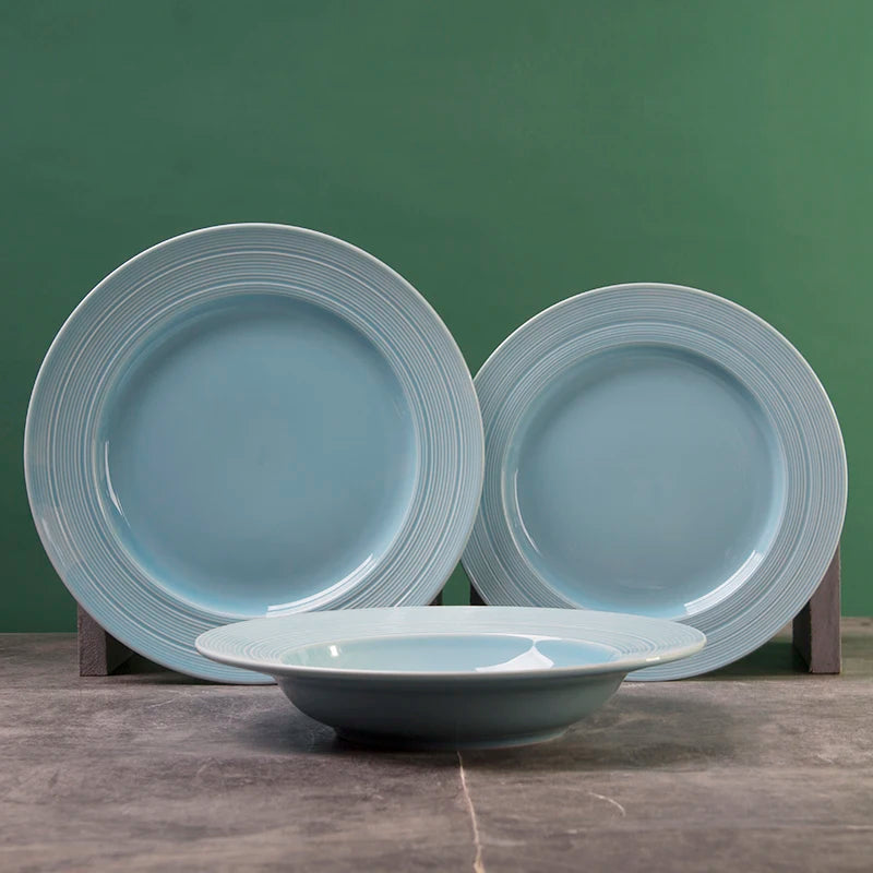 Upgrade your dinnerware with our Hadley Blue Dinner Plates set. Made with high-quality ceramic material, each plate features a wide edge, round design, and a matte finish for a sophisticated touch to your table setting. This set includes 3 pieces, perfect for serving your favorite dishes or pasta bowls. Elevate your dining experience with style and durability.