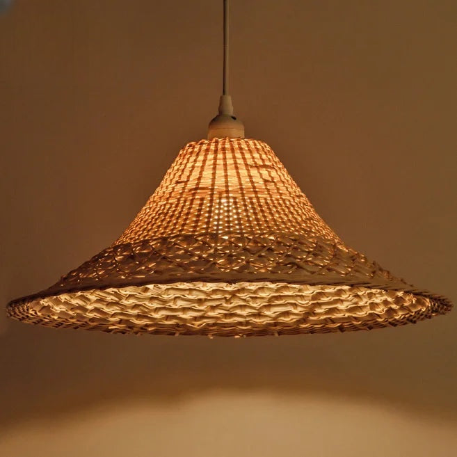Crafted by hand, the Hat Shape Bamboo Pendant Light adds a touch of modern elegance to your dining room or restaurant. Made from natural bamboo, this decorative rattan pendant light emits a warm and inviting glow, creating a cozy atmosphere for your guests. Elevate your space with this unique and eco-friendly lighting option.