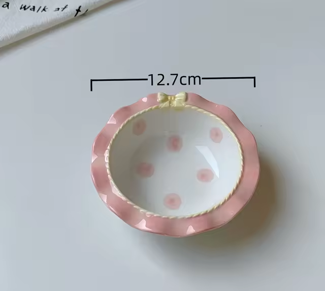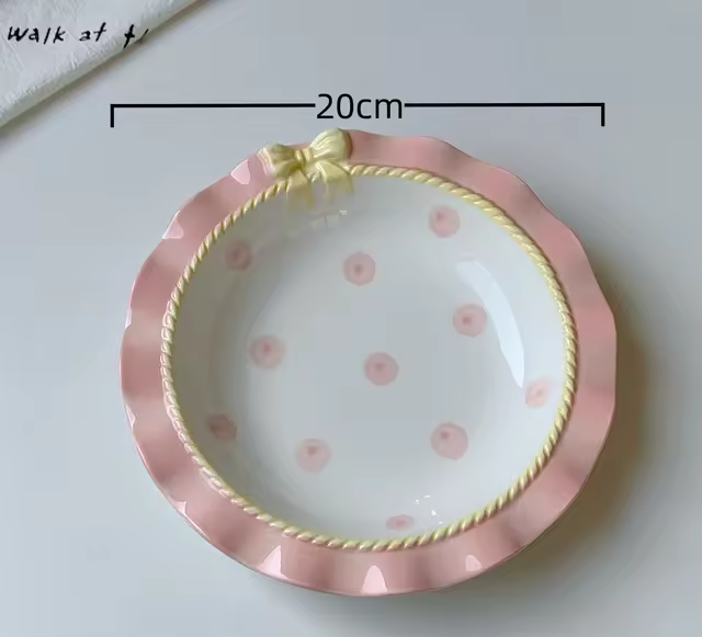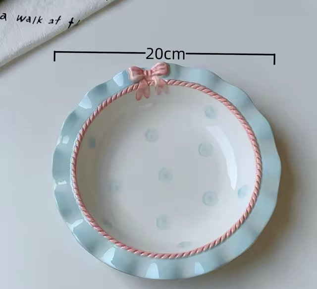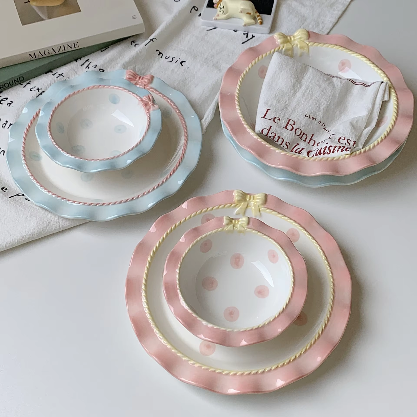 Upgrade your dining experience with our Lathen Bow Dinnerware! Made with high-quality ceramic, this set features a charming heart pink or blue design with playful polka dots and bow. The perfect addition to any table setting, our bowls and plates are deep, cute, and perfect for serving rice and other dishes for you or your kids.